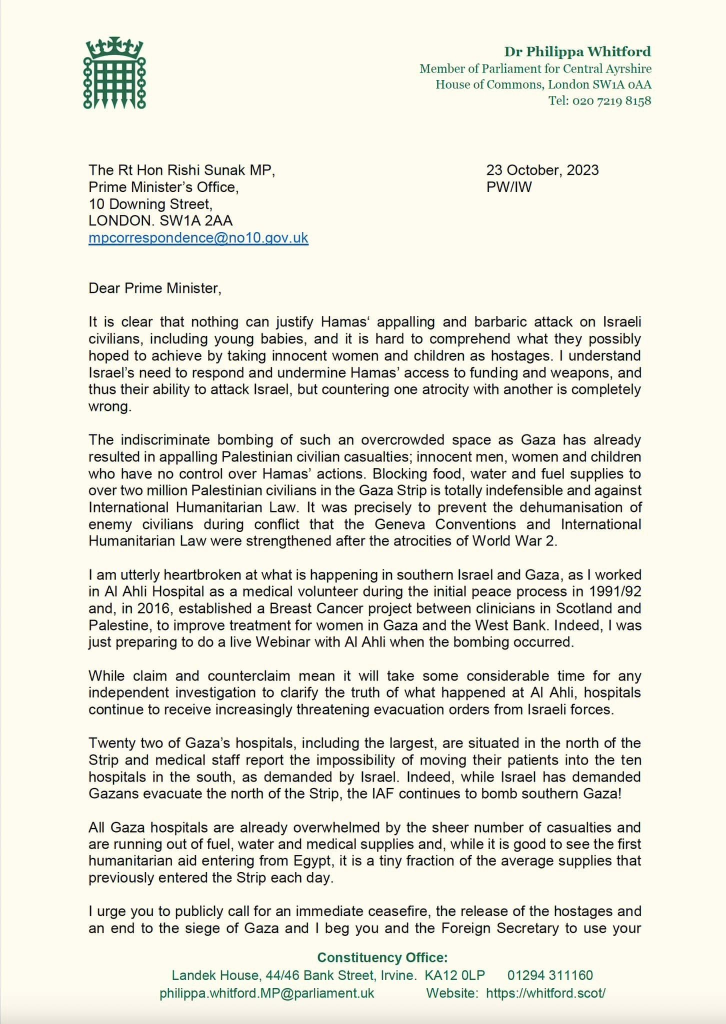My letter to PM Rishi Sunak, asking him to help end the killing in #Israel & #Gaza by calling for a #CeasefireNOW, along with the release of the #Hostages and an end to the #SiegeofGaza
